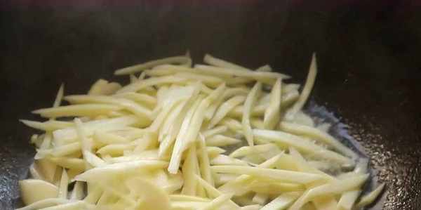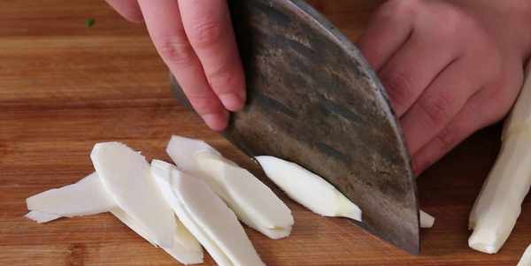1、茭白細絲要切得細一點。