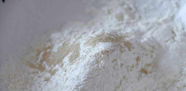 將面粉200g倒入大碗中,加3g酵母,攪拌均勻。(做這道網紅小吃,可以選擇高筋面粉或者中筋面粉。)