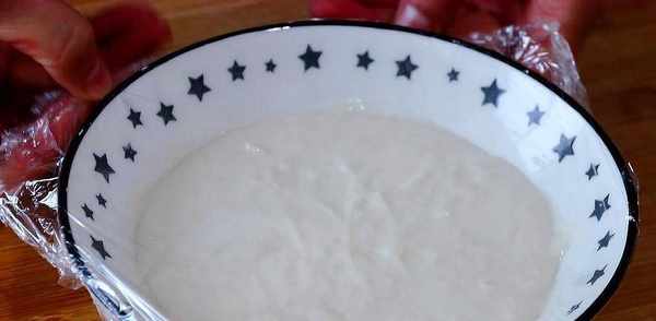 在面糊碗上蓋一層保鮮膜,放置溫暖的地方醒發一個小時。