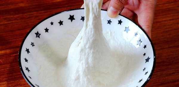 往面粉碗中倒入180g的溫水,攪拌均勻,把面糊攪拌至濃稠的糊狀。(和面的水溫度不能太高,太高就容易殺死酵母,面糊發不起來。)