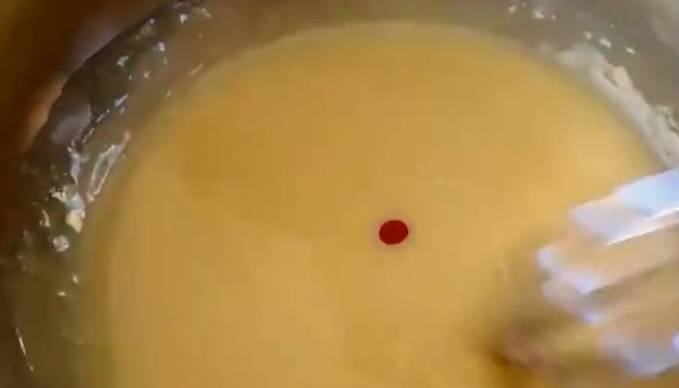 6.準備醬料,把白巧克力融化,白巧克力加入紅色色素,攪合攪合,當然你喜歡什麼顏色就加什麼顏色色素咯;