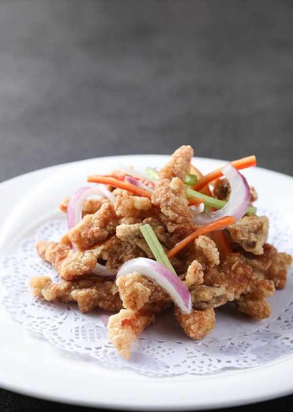 這款菜選用豬排骨的仔肋部位,具有肉厚實,骨頭脆的特點。采用蒸、炸兩種方法烹制,成菜肉軟,外酥裡香,配以糖醋生菜食用,風味別致,油而不膩。