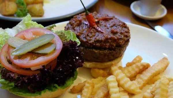 平底鍋放橄欖油燒熱,將牛肉餡逐個做成圓餅放入鍋中,小火煎至肉汁流出即可盛出,搭配沙拉食用。