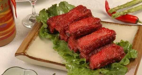 原鍋控凈油,燒熱,放入黃油炒化後,加入蒜片,青椒丁,紅辣椒丁,洋蔥絲爆香,放入竹筍,香菇,紅葡萄酒,百裡香,胡椒粉,鹽,白砂糖,番茄醬,倒入適量清水翻炒均勻,出鍋澆在排骨上,放上熟栗子肉即可。