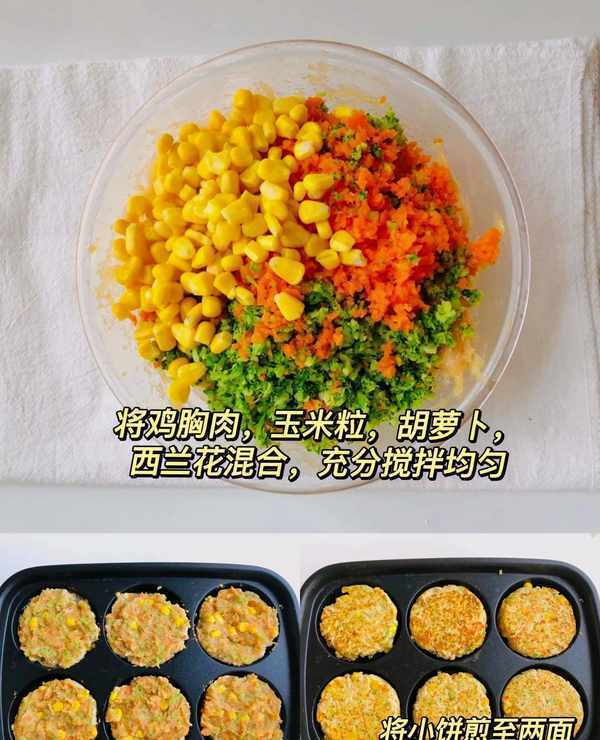 加點蔬菜做成雞胸肉小餅,鮮嫩美味,又營養又健康。