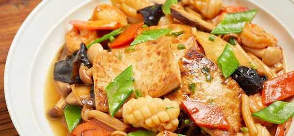 豆腐是我最喜歡的食物之一,去天津也必然要嘗一嘗他們那兒的“八珍豆腐”!這八珍豆腐裡的“八珍”啊,並不是固定的,而是因季節而異的。豆腐經高溫炒制入口仿佛就要融化瞭一般,與其他菜碼一同食用,吃進口中口感豐富有層次。