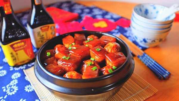 最後,炒糖色,下入蔥花,薑絲,醬油,大料,花雕酒炒制均勻,加入開水,等待開鍋,開鍋後再燉煮一個小時就可以食用瞭。越煮越入味,肉的口感越軟爛。