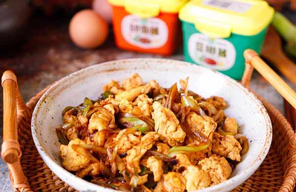 材料:雞蛋3個,大蔥一棵,六月香豆瓣醬1大勺,六月香甜面醬1勺,白糖3克,料酒1大勺,植物油1大勺