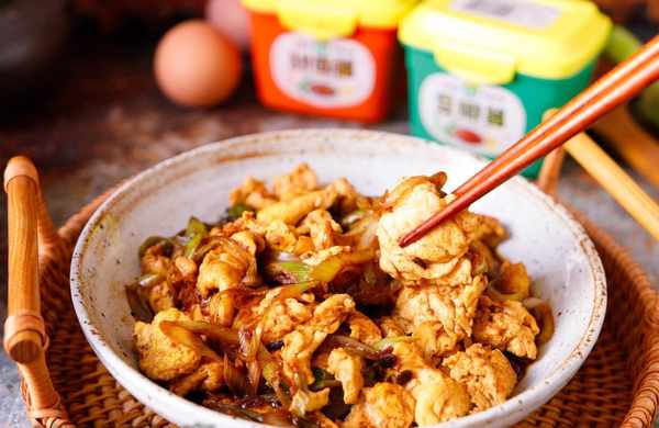 豆瓣醬、甜面醬裡都有鹽,雞蛋裡無需再放鹽。