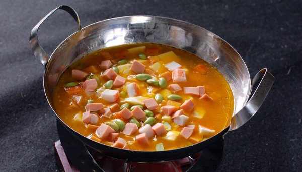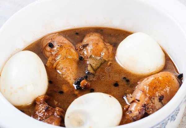 2.原碗放在鋁鍋內用旺火蒸約15分鐘,以熟透為度,以免以起蜂窩眼,然後取出成雞豆花,然後用水果刀沿碗邊起松雞豆花,再在上面點綴蘑菇、番茄數片。最後將無油的雞湯放入鍋內,加入鮮菜心,調好味,燒沸,輕輕註入雞豆花內即成。切不可沖爛雞豆花。