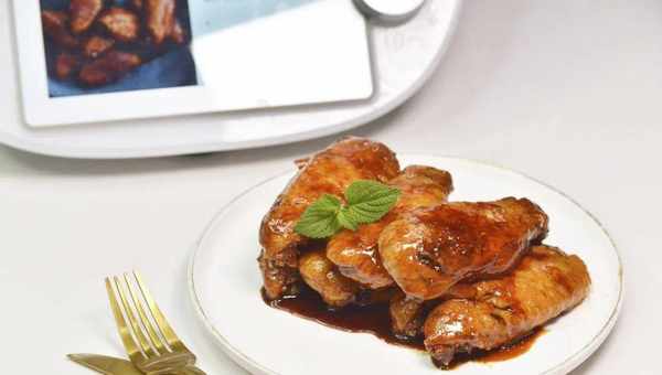 烹煮完成,裝盤開始享用,雞翅軟爛入味一抿即化,紅燒口味非常正宗,大口啃雞翅的感覺真的太享受瞭。