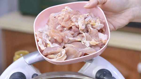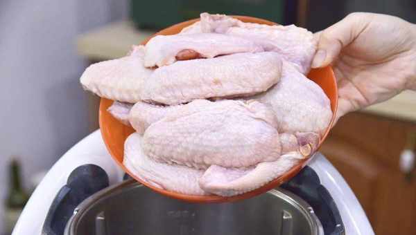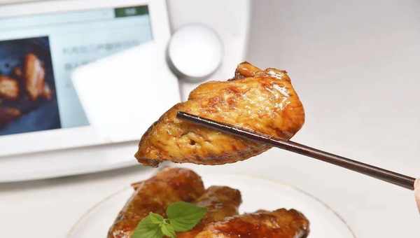 1.將雞中翅、白砂糖、生抽、老抽、料酒、純凈水和薑片一起加入主鍋中,以26分鐘/V檔/反轉速度小勺烹煮;