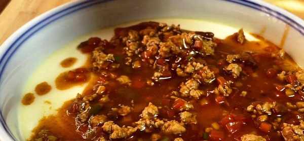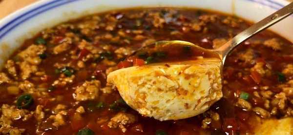 6、我們把做好的肉末料汁加進來,哇,現在看著都是特別的有食欲哦。再撒上適量的蔥花,這樣我們的肉末雞蛋豆腐羹就完成啦。這樣做出來的豆腐雞蛋羹雞蛋的嫩滑,加上肉沫,胡蘿卜,營養又美味,用小火慢蒸,這樣蒸出來的雞蛋特別的細膩,沒有任何的蜂窩,入口即化。裡面也加瞭豆腐進去,營養又美味。早上不知道吃什麼的朋友們,就可以做上這麼一碗熱乎乎的豆腐雞蛋羹,吃完全身都舒服,如果是做給傢裡孩子吃的,我們就不用加豆瓣醬瞭。