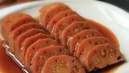 1,糯米泡發去水分加半勺糖拌均勻放入去皮的藕裡面放滿,蒸櫃蒸熟切片碼入盤中淋入糖欠汁,最後澆入桂花糖。