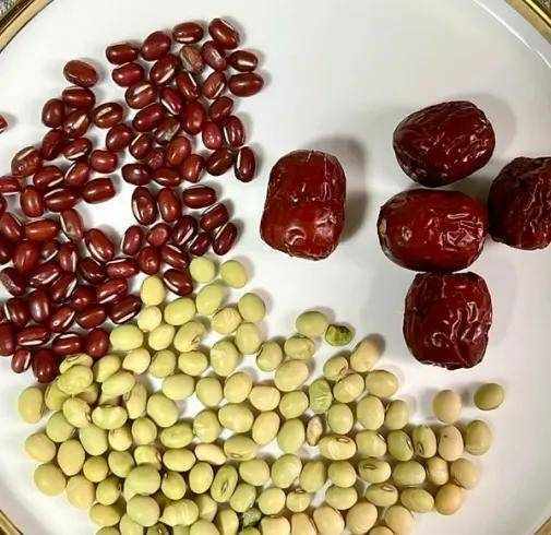 紅豆20g,黃豆30g,紅棗6粒,水800ml