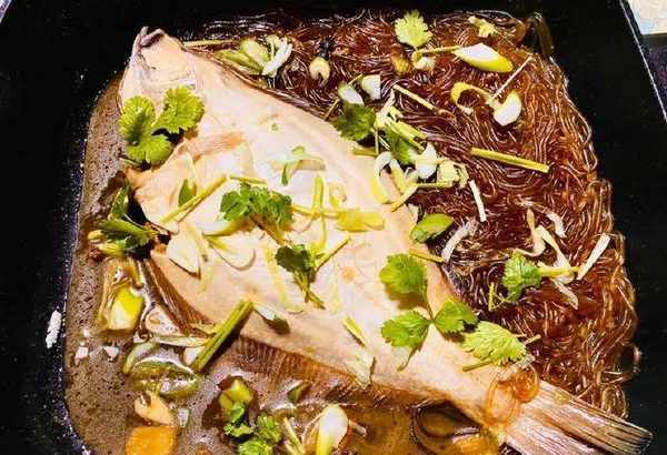 都說美食配美器,大魚理應配大器、大鍋。個頭超大的石漿魚放在大電鍋裡,看上去不僅養眼好看,而且還顯得魚更大、更壯觀。除瞭大魚,大鍋一角的紅薯粉紅潤油亮,是好吃的樣子,嘗嘗,果然味道鮮美,口感爽滑筋道。抄起雪白的魚肉來一塊兒,好傢夥魚肉細膩、厚實、緊致、鮮嫩,真正的肉多刺少,老少咸宜。是誰說石漿魚不好吃,寧肯丟掉也不屑去吃?這樣一道難得的美食白白被浪費掉瞭這麼久,想想著實可惜。好在亡羊補牢 猶未遲也,知道好吃,以後多吃便是瞭……