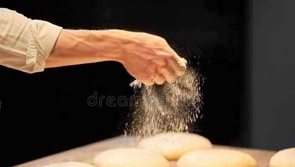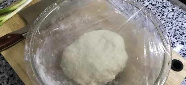將小麥面粉放進盆裡,倒入開水,並且快速地攪拌均勻,等水溫正好的時候繼續揉面。