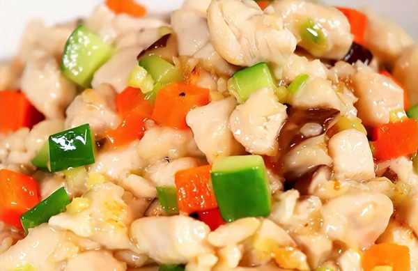 做法:1、雞胸肉切成丁洗凈擠幹水分,加入少量淀粉、恒順料酒、胡椒粉、鹽、蛋清攪拌均勻上漿;