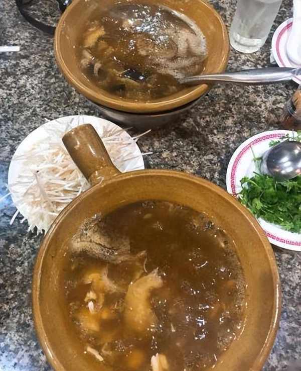 燕姐發話瞭,稍涼再吃,慢慢品,這東西膠原蛋白濃厚,我最愛吃的是剛放進去的嫩豆芽,像涮火鍋,撈起即食,祝你吃完它,虎虎生威,展翅高飛!