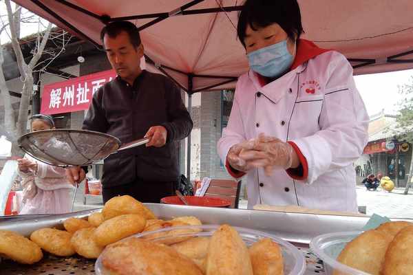 說起炸油糕,耿大哥打開瞭話匣子,他說自己是個退伍老兵,復員返鄉後在社會上創業,幾乎什麼職業都幹過,可是什麼也幹不好,甚至最後養豬還賠瞭50多萬元,曾經一蹶不振,軍人的作風讓他重新站瞭起來,10多年前他便選擇瞭從炸油糕的小本生意做起,在母親的幫助下自己把傢傳的油糕技術進行瞭升級改造,閉門不出實驗瞭1個多月時間,研創出瞭脆皮油糕,然後走上街頭開始瞭油糕創業。運城市是古中國的發祥地,地面上的人文古跡很多,景區多遊客多市場大,他便把眼光投向瞭這裡,足跡遍佈13個縣市的旅遊景點,脆皮油糕自然而然的有瞭名氣,生意也是蒸蒸日上。