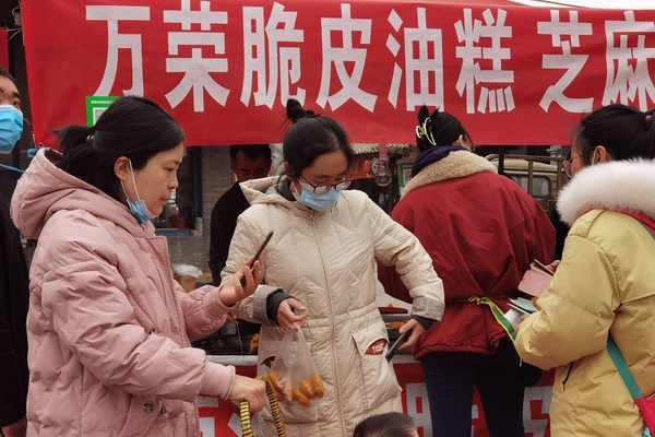 正月初二,孩子們鬧著要外出,就近選擇在山西運城舜帝陵景區網紅美食一條街上,雖然天空中飄著著小雨,可是來這裡遊玩吃喝的人群依舊熙熙攘攘,攝影師是個不太喜歡熱鬧的人,便走到瞭街尾,站在一旁等著傢人,發現一個賣萬榮脆皮油糕的攤位上生意異常火爆,總是一群人在排隊買油糕,隨後便走瞭過去。聽主傢說昨天的營業額達到瞭8000多元,著實讓人吃驚。