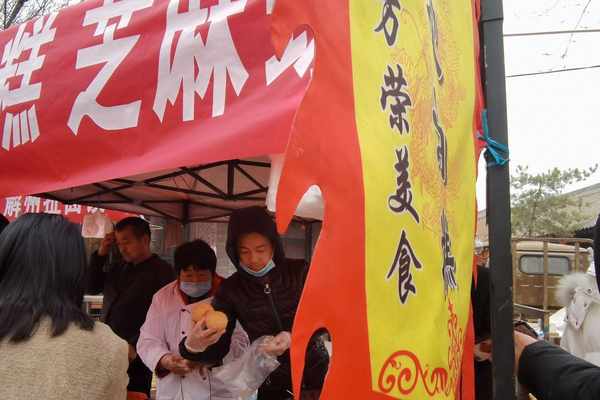 大哥說剛開始就是他和妻子2個人在炸油糕,隨著時間的推移,自傢的油糕也是越做越好,生意就很火爆,常常出現供不應求的場面,兒子結婚後小兩口也加入進來,組成瞭傢庭四人小團隊,四人分工明確,密切配合,妻子包油糕,自己炸油糕,兒媳賣油糕,兒子是替補,那裡忙瞭幫那裡。昨天正月初一,舜帝陵景區人很多,吃油糕的隊伍排出30多米的長隊,4個人就像機器一樣在不停地幹活,賣出瞭8000多元的營業額。