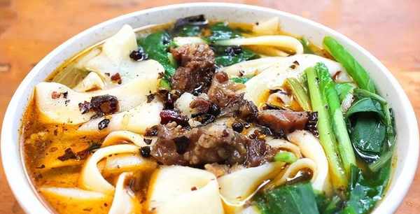 南陽的新野板面在當地可以說是人盡皆知,不僅被列入瞭南陽市非遺,還上瞭央視,這種寬面耐嚼筋道,吃到嘴中滑溜溜的,再加上牛羊肉丁做的香辣臊子,看著面粉白,油紅亮,菜青綠,吃上一口面,喝上一口鮮湯,感到無限的滿足。