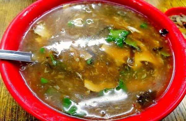 也是屬於河南的一道特色美食,當地人都是當作早餐食用的,搭配上幾個煎包,或者幾根油條、糖糕,胡辣湯裡面的食材非常豐富,肉丁、木耳、豆腐絲、粉條,口感微辣,即使是小朋友也看一看吃得下去,而且非常濃厚,很占分量。