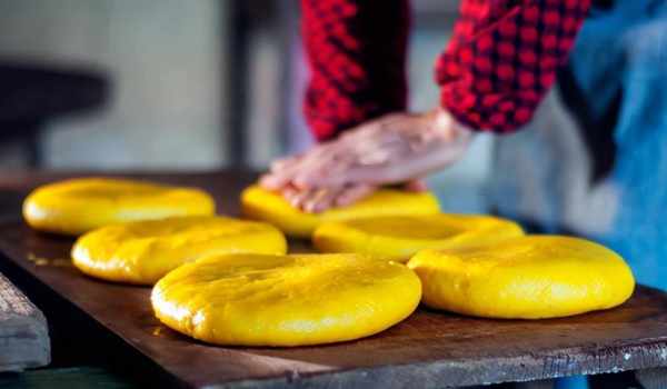 正宗的黃元米果是用大禾米加工而成,大禾米獨特的粘糯性使它成為做黃元米果的不二材料。而黃元米果通體金黃的奧秘則在於天然的染色劑——槐花,它可以與堿水混在一起制成黃堿,給煮熟好的大禾米上色。