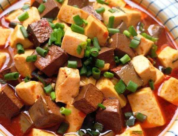鍋裡燒油放蒜末,煸炒出香味兒, 放豆瓣醬,炒出紅油,放過水後的豆腐,鴨血 是翻炒均勻,放半勺老抽,一勺生抽,胡椒粉,食鹽,雞粉,白糖 收湯汁,撒上韭菜花,淋上花椒油 出鍋裝盤食用。
