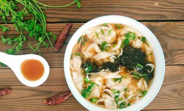 最後,把煮好的餛飩放入碗裡,加入香菜,蝦皮,紫菜,香油,哇塞太美味瞭。朋友們,喜歡吃嗎?快開始跟著做吧。
