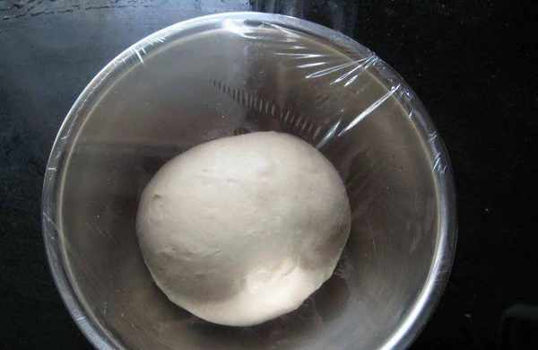步驟3:把剛才的面粉和水放在一起揉成光滑面團,用保鮮膜蓋上醒發20分鐘,醒好以後再揉搓一下,就可以搟面皮包瞭。