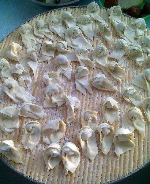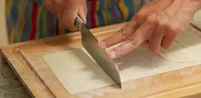 步驟5:切好皮之後,把餡兒包餛飩裡面,放好