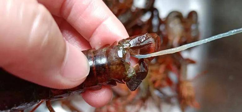 二:剪頭去尾丟沙包,尾部中間檸一下,揪掉蝦線,給高濃度白酒小龍蝦喝醉,去蝦腥味殺殺菌。