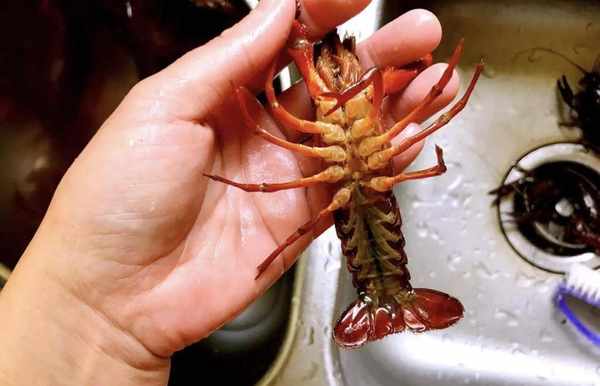 用刷子給小龍蝦洗個澡,要註意安全哦,小心小龍蝦的大鉗子!