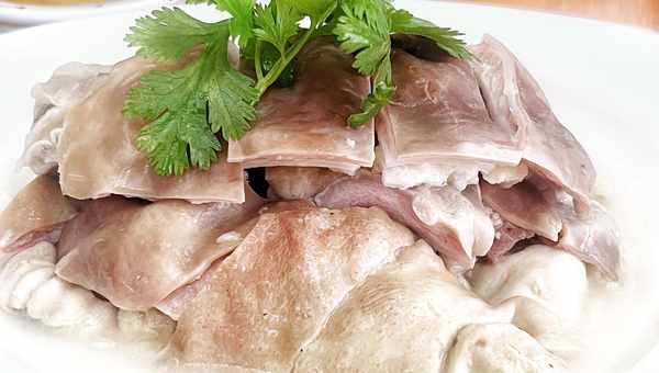 三:起鍋後,斜刀切厚片,夾一塊,口感十足,非常有嚼勁,雖然豬肚屬於葷菜的一種,但怎麼吃都不膩,按廣東人的說法,吃什麼補什麼,那麼這道胡椒豬肚既可補又因為胡椒的功能,還能順氣。如此,這道菜著實不錯