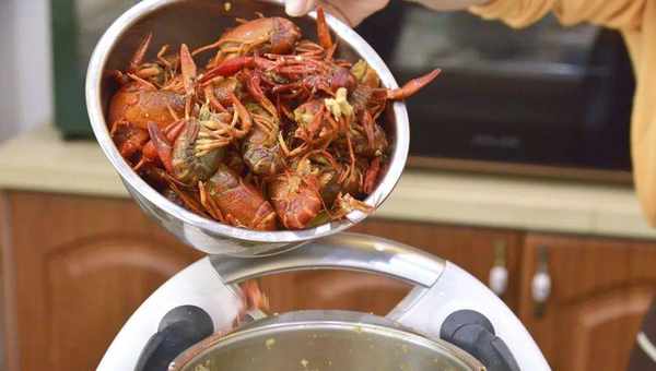 6.加入小龍蝦,以10分鐘/V檔/反轉小勺烹煮;