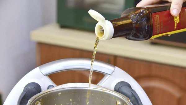 4.再加入40g食用油、30g生抽、5g醋、1g糖,蓋上主鍋蓋和量杯蓋,以3分鐘/V檔/反轉小勺炒香;