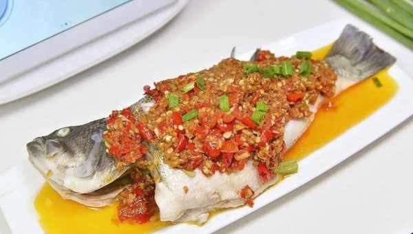 剁椒醬炒好之後,淋到魚上,鮮嫩多汁爽辣有味的剁椒魚就完成瞭~