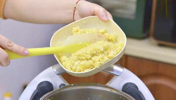 2.將薑蒜放入小美鍋中,蓋上主鍋蓋和量杯蓋,以5秒鐘/速度6攪打成薑蒜泥,盛出備用;