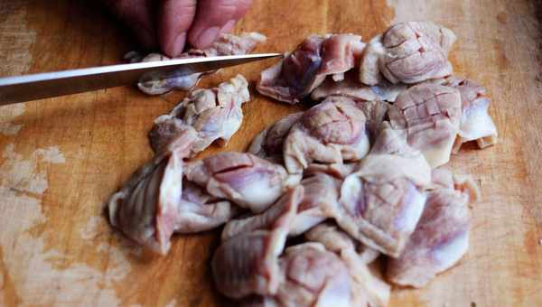 1、雞胗異味大,需要提前冷水浸泡30分鐘以上或者用食醋反復搓洗。