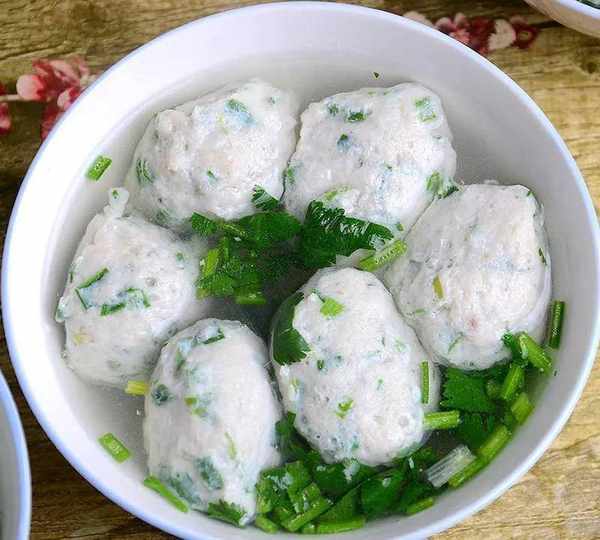 5.鍋中水開,把魚肉糜擠成丸子下 入鍋中,煮熟放上香菜即可。