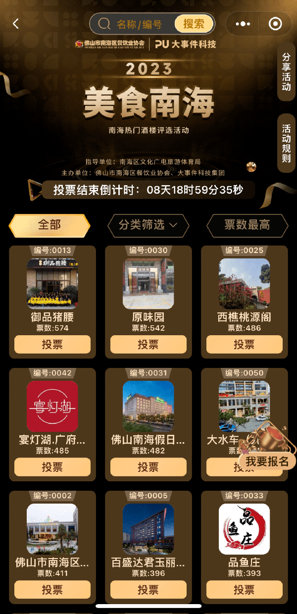 目前南海熱門酒樓評選活動已進入投票環節,最終將通過綜合評分排名產生“南海區十大熱門酒樓”獎項獲獎品牌。