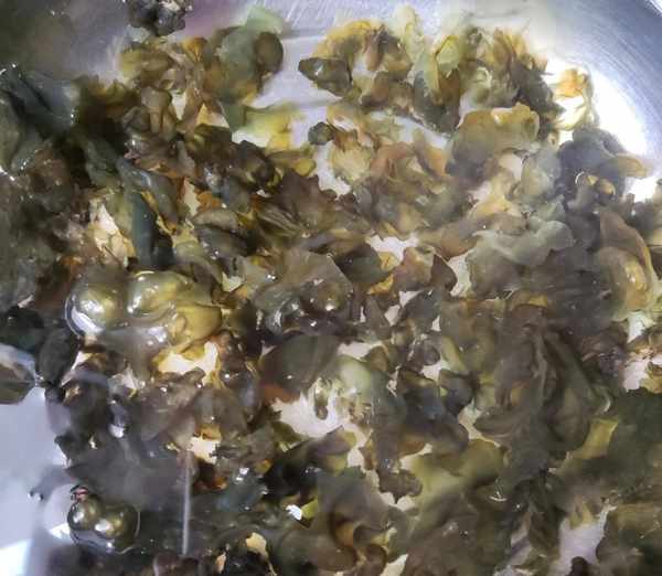 新鮮的地皮菜往往由於其生長環境而外表被一些灰塵顆粒包裹嚴重,因此清洗起來是十分麻煩的,需要一片一片地把給摘幹凈,清洗不幹凈,後面吃起來會有砂石粒磕牙的哦。