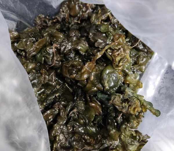 地木耳,顧名思義,跟木耳有些關系,外表長得跟木耳有些相似,但顏色有點點區別,木耳是黑色的,地皮菜是綠色的,吃起來的口感跟木耳也是差不多的,但木耳是菌類,地皮菜是藻類。