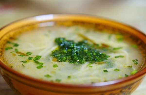 3.將面和好後,用手搟成並切成細長的面條,將面條煮開後盛入碗裡,再舀上幾勺調好的漿水、最後加入香菜,一碗可口的漿水面就大功告成瞭。
