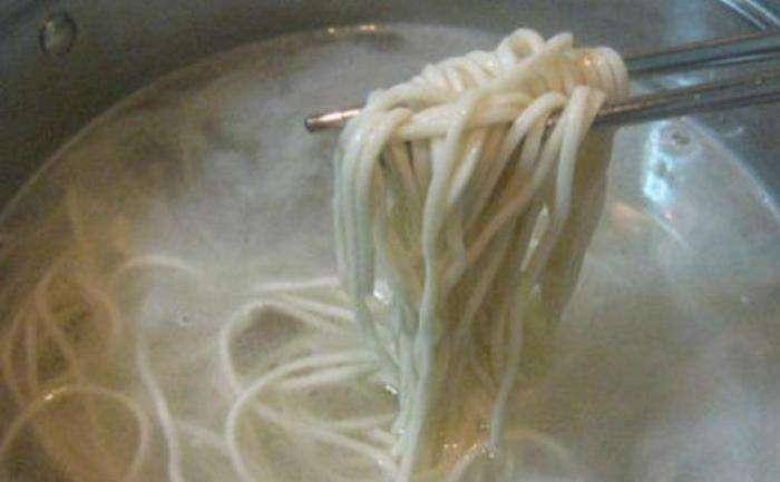 3.成形:手工拉面,至半根筷子那樣的粗細程度,加一勺鹽放入鍋中。
