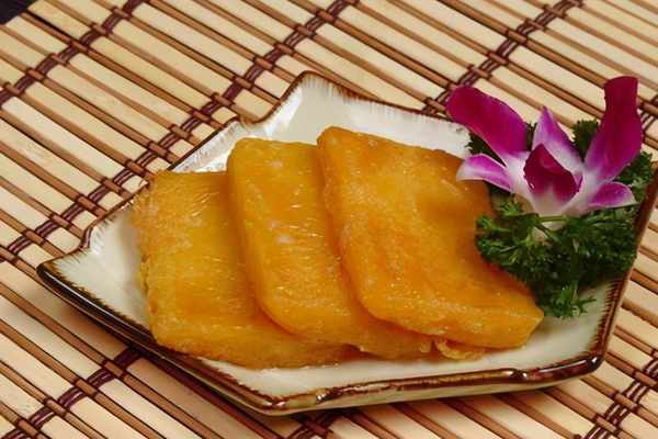 東北山東年糕的做法也基本是這樣,而黃河流域的黃米糕比較有自己的特色,用黍米磨成的純黃米面,撒粉蒸熟後手工揉成糕團,稱謂就一個字“糕”。吃的方法,一是“素糕”直接吃,二是“油炸糕”,把糕制成面皮包入豆、糖、菜等餡料,再放入油中炸至金黃,吃起來裡香外酥。