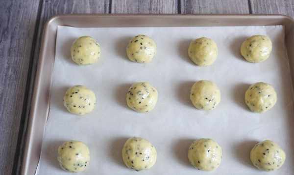 6.稱量一下,30g一個麻薯面團,可以做12個。?搓圓放入鋪好油紙的烤盤中,要留有間隙,等下它在烤箱會蓬松變大2-3倍。