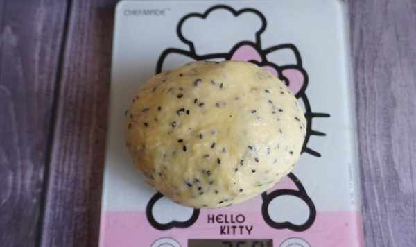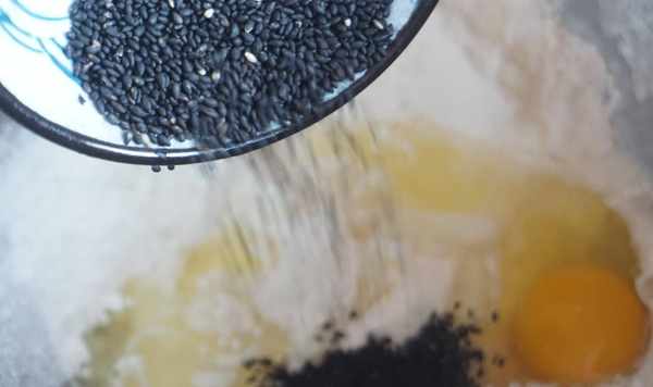 食材:麻薯預拌粉200g,牛奶60ml,玉米油45ml,雞蛋一個,黑芝麻5g。